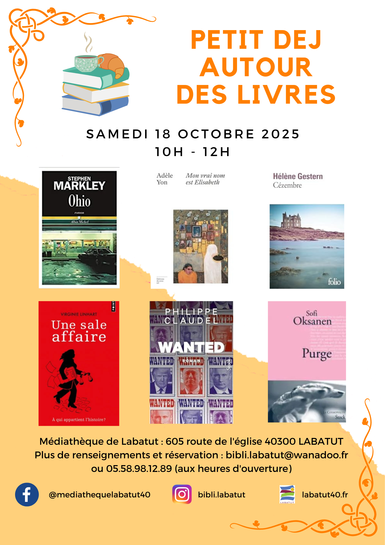 Petit déj autour des livres ! Échangez sur l’actualité littéraire et partagez vos coups de cœur !