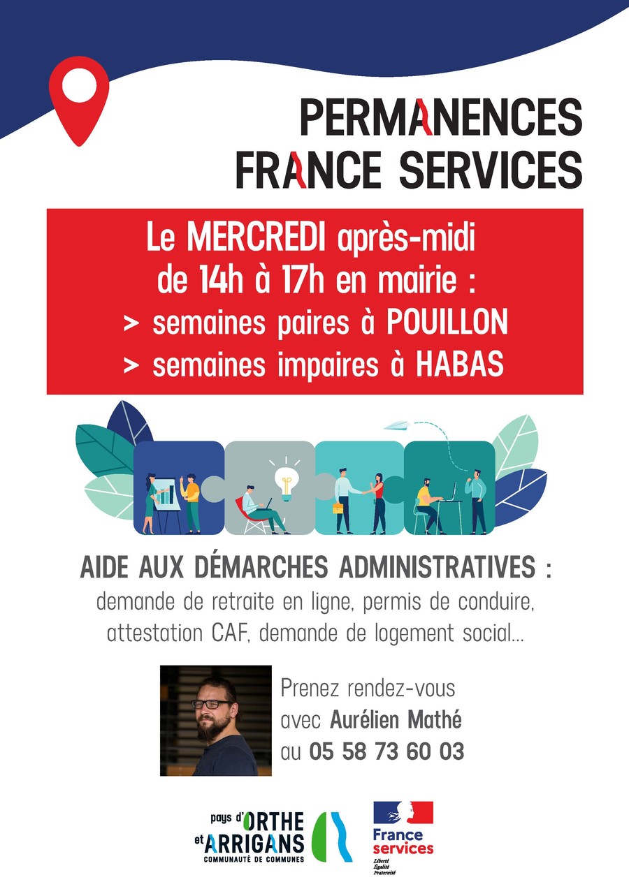 > Prenez rendez-vous avec Aurélien Mathé, conseiller France Services, au 05 58 73 60 03 pour bénéficier d'un service de proximité pour vous accompagner dans vos démarches administratives.